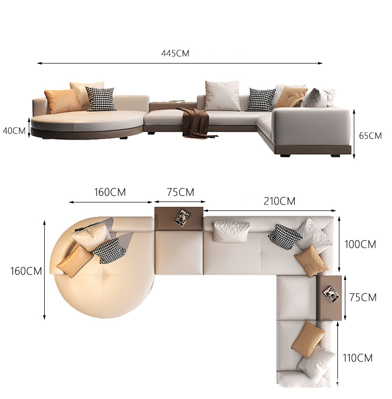 ERICA – NS35 gồm 5 khối ghế ghép lại với nhau để tạo thành một bộ sofa chữ U. Tuy mỗi khối ghế có kích thước & chiều dài khác nhau nhưng bản sâu, cao ngồi, cao phủ bì đều có chung một kích thước. Không gian càng rộng thì việc bố trí sofa càng đẹp mắt mang lại sự bề thế cho không gian. ERICA – NS35 được thiết kế dành riêng cho những không gian có diện tích phòng khách lớn như các không gian biệt thự, biệt thự vườn, liền kề, penhouse…