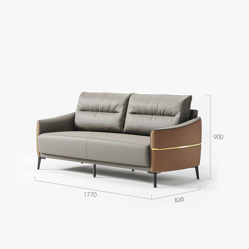 Màu sắc chủ đạo của sofa là ghi sáng trung tính, kết hợp tinh tế với phần tay vịn nâu da bò ánh cam, bộ sofa màu ghi xám mang lại một vẻ ngoài quý phái nhưng không quá lạnh lùng, phù hợp với nhiều tông nền nội thất. Do vậy, dù đặt trong bất kỳ không gian nào, sản phẩm đều dễ dàng hòa nhập và nâng tầm thẩm mỹ không gian.